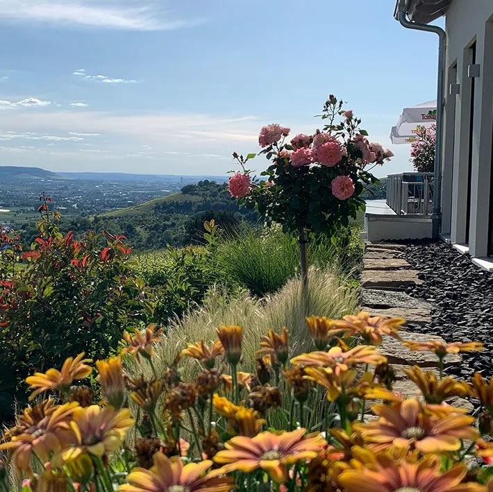 Das Weingut Mayerle mit seinem atemberaubenden Weitblick auf das Remstal und weit über Stuttgart hinaus, eignet sich für Veranstaltungen bis zu 70 Personen.